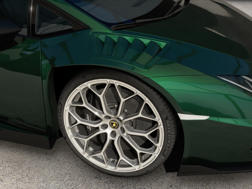 RWD Huracan Performante with custom bodykit based on various racing Huracans but with a smaller wing. Think of it as a ST Touring. Interior has been adjusted to give a slightly less sporty and a bit more of a luxurious feel.